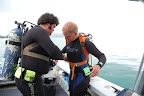 Two days ago, Cam took me out hunting - for scollops! Ends up me wearing the most simple setup ever: a backpack to hold the tank, and that's it. Something that PADI wouldn't really approve of, but apparently that's the Kiwi Diver way. And if you're wondering about my boyancy, it wasn't a problem. I was perfectly weighted, so I was neutrally bouyant the whole time, which was freaking amazing! I was swimming through the water with no problems what so ever! The viz was pretty bad, like 4 meters, and we lost each other a couple of times, but it worked out and we found our selves a couple of scallops, which turned into a good appetizer for the night. Ended up doing two dives, one 40 minute, and the other about 15 minute, quite memorable.